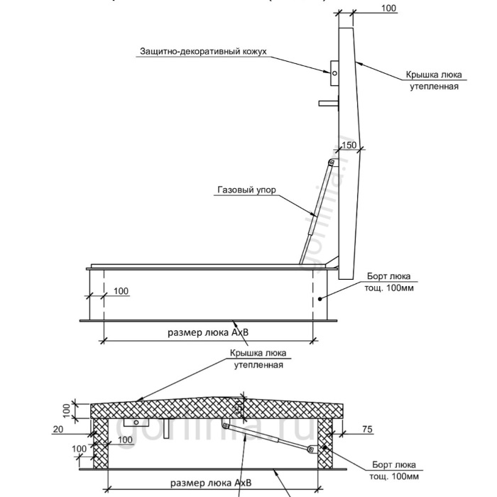 - внутренняя ручка для опускания в створ со стороны лестницы в помещении.
