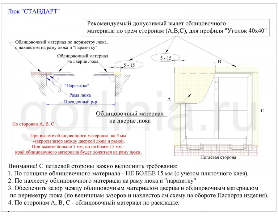 Инструкция по технологическим зазорам, вылетам, наклейке плитки на крышку и раму.