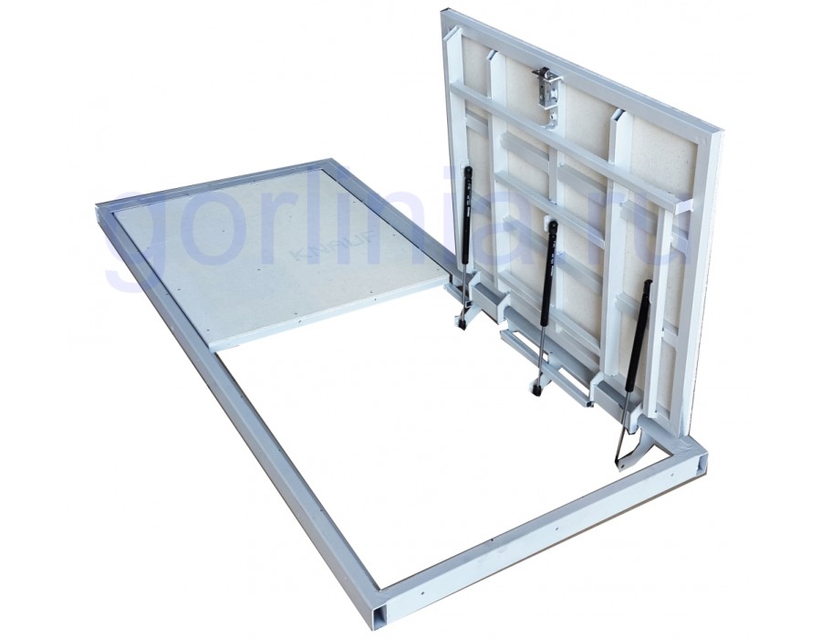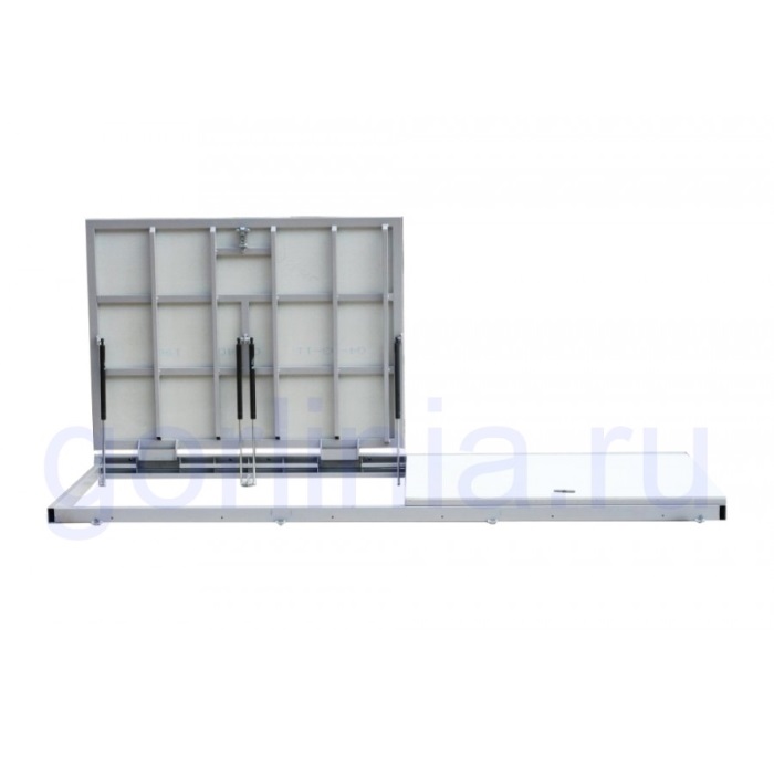 Конструкция выпускается из стальной профтрубы Ст3 50х25 в раме, трубы 30х20 в каркасе дверцы. Мы не перегружаем створки металлом, добиваемся несущей способности сложной многоуровневой обвязкой. Балансируем нагрузку на раму от усилия амортизаторов дополнительным узлом петли по результатам компьютерного моделирования нагрузок.