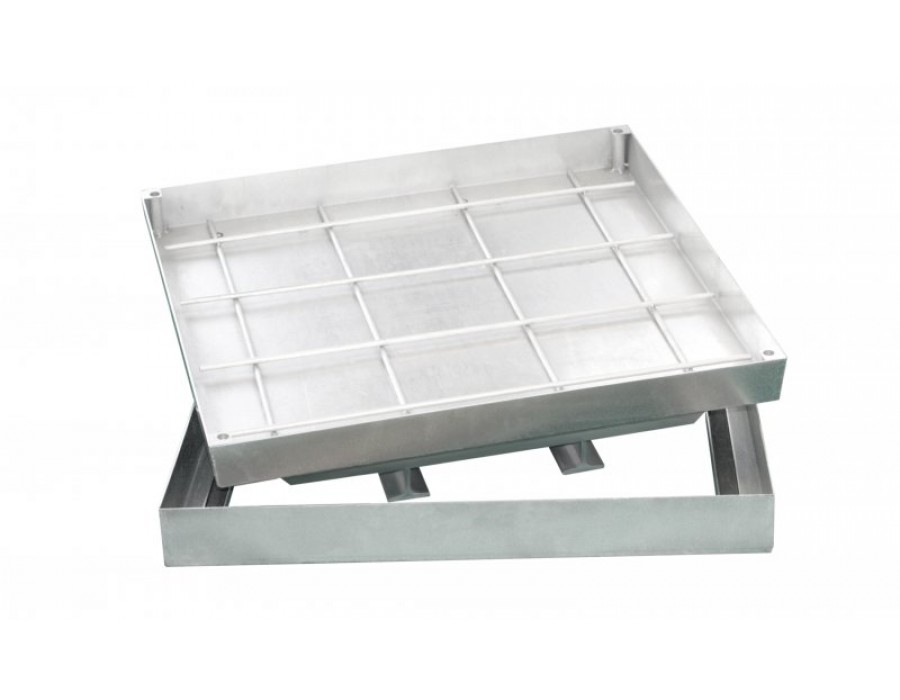 В угловых площадках ляды вварены втулки под запорные винты. Винты вворачиваются шестигранным ключом в ответную резьбовую втулку рамы и прижимают ванночку к основанию.