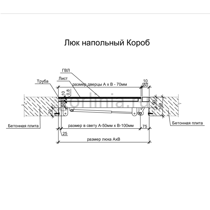 Рама без наличников выставляется в существующем отверстии 60*80 см с допусками, крепится в перекрытии через вертикальные пластины даже когда Ваш ремонт закончен и пол выложен керамогранитом или настелена ламинированная доска.