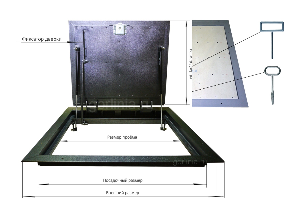 - сравнительно большой вес дверцы поддерживается специальными упорами и механическим фиксатором;